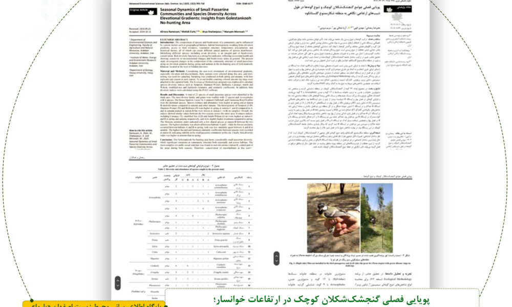 پویایی فصلی گنجشکشکلان کوچک در ارتفاعات خوانسار؛ نتایج تحقیق محیطبانان در مجله علوم محیطی