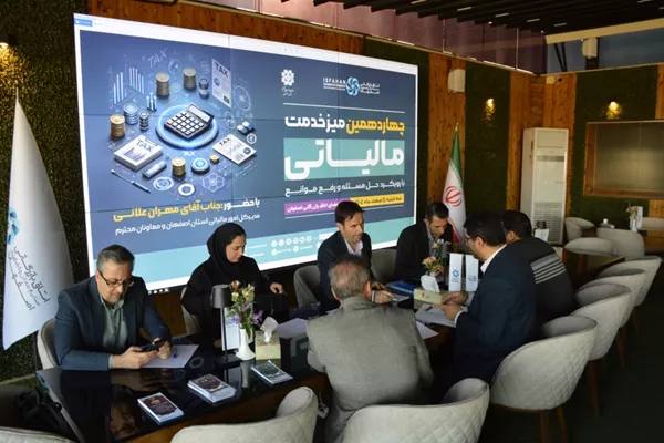 درراستای بررسی مشکلات مالیاتی اعضاء اتاق بازرگانی اصفهان چهاردهمین میز خدمت مالیاتی با حضور مدیرکل امورمالیاتی استان ومعاون حسابرسی مالیاتی شرق اصفهان برگزار شد در جریان برگزاری این میزخدمت ضمن بررسی مشکلات مالیاتی اعضاء اتقا بازرگانی مساعدت های قانونی لازم وراهنمائی لازم توسط مدیر کل امورمالیاتی استان به فعالان اقتصادی ارائه شد