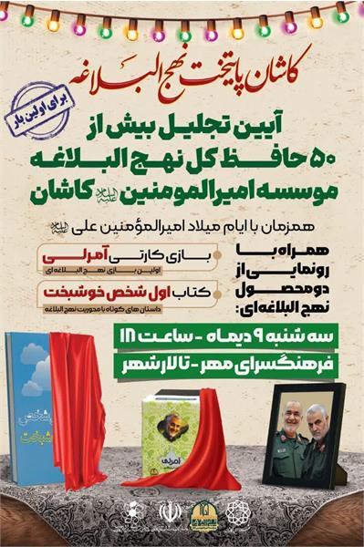 این آیین همزمان با ایام میلاد امیرالمومنین علی(علیه السلام) و همراه با رونمایی از دو محصول نهجالبلاغهای” بازی کارتی آمرلی” و️ کتاب “اول شخص خوشبخت” برگزار می شود.