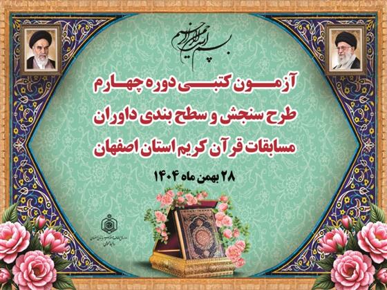 چهارمین دوره طرح سنجش و سطحبندی داوران مسابقات قرآن کریم همزمان با سراسر کشور، روز سه شنبه ۲۸ بهمنماه از ساعت ۹ تا ۱۱ در سالن اجتماعات ادارهکل سازمان اوقاف و امور خیریه استان اصفهان برگزار...