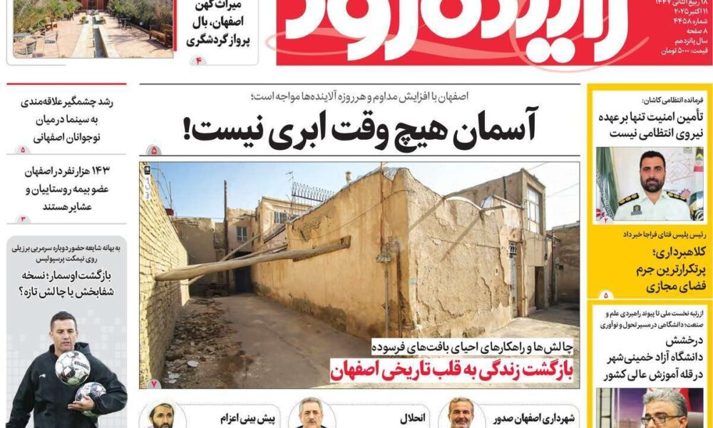 صفحه نخست روزنامه‌های اصفهان شنبه ۱۹ مهر